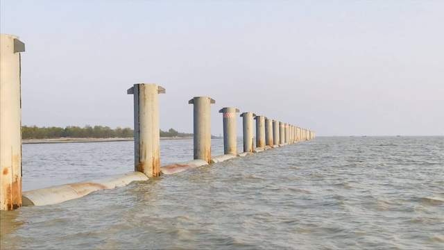 তিন কিলোমিটার ঢেউ গতিরোধক বাঁধে মোট ১২৯টি পাইল এবং ১২৭টি বুম ব্যবহার করা হয়েছে। প্রতিটি পাইপের ঘনত্ব ১৬ মিলিমিটার।